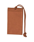 - Holds ID/business card card behind clear PVC window on back panel hidden by Leather flap