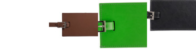- Sueded Full-Grain Leather luggage tag with matching adjustable leather strap and Zinc Alloy buckle