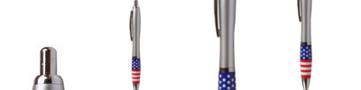 - Retractable curvy barrel ballpoint pen with patriotic-themed American flag stock art grip