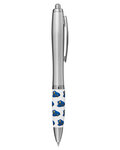 - Retractable curvy plastic barrel ballpoint pen with stock art grip featuring a Church Emoticon