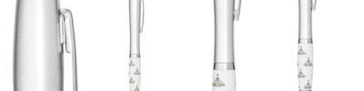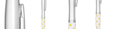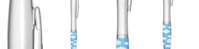 - Retractable curvy barrel ballpoint pen with Jetline's exclusive stock art grip featuring our Emoticon happy face